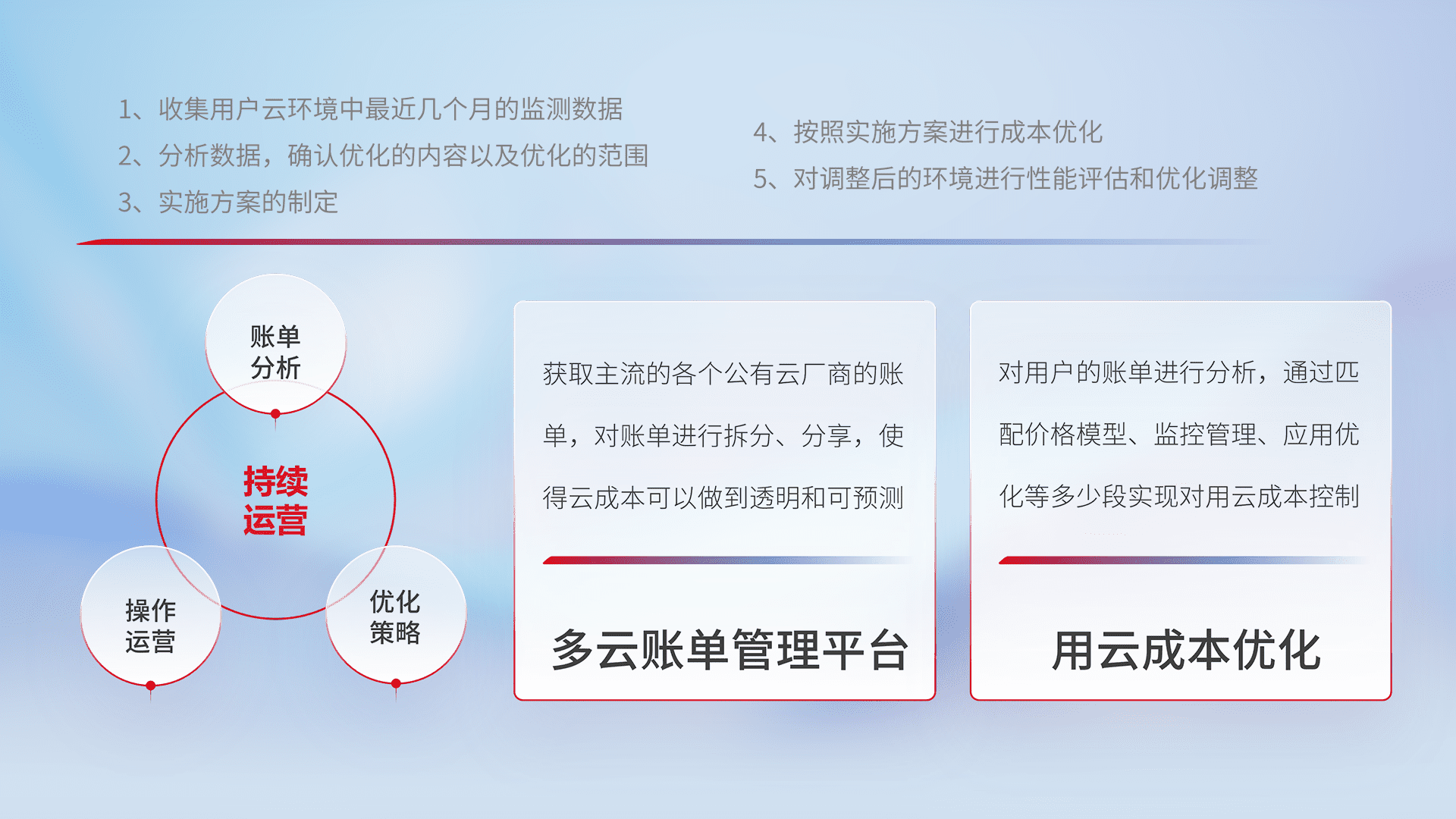 运用智能化工具分析云资源,,,提供日常费用可视化工具,,,,自动账单拆分,,,成本优化云上费用,,,,降本增效。。。。